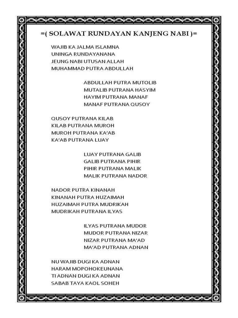 Pupujian "wajib ka jalma islamna". Eyangna abdul mutholib abdul mutholib ti hasyim Uninga rundayannana jeng nabi utusan alloh muhammad putra abdulloh 2. Nadhom rundayan nabi wajib ka jalma islamna uninga rundayanana jeung nabi utusan alloh muhamad puteara abdulloh 2x abdulloh putera mutholib . Sholawat wajib ka jalma islamna mp3 download gratis mudah dan cepat .